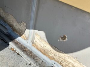 タイルを一部撤去して確認すると、屋上扉の下部分に隙間があり、そこから浸水していた可能性が高いことが判明しました。