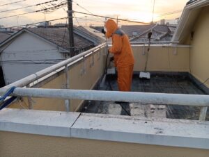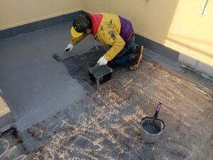 その上から防水材としてウレアックス(密着工法)を使用しました。