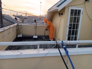 その上から防水材としてウレアックス(密着工法)を使用しました。