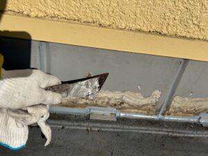 既存の防水層がポロポロと捲れてきていたため、ケレン作業を行い下地を整えます。