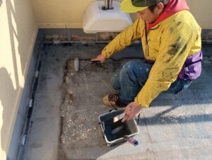 プレイマーを施し、全体に防水材を流し込んでいきます。