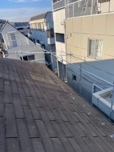 東京都町田市にて、お付き合いのある会社様より「管理しているアパートの屋根をメンテナンスしてほしい」とのご紹介をいただき、現地調査を行いました。建物の状況は、屋根の経年劣化が見られ、スレート屋根にひび割れが多数見受けられましたので、カバー工法をご提案させて頂きました。外壁はタイル仕上げのため、塗装ではなく洗浄にて対応させて頂く運びとなりました。