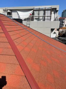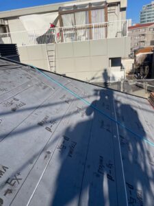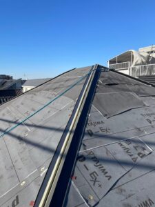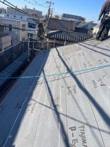 まずは既存の屋根材の上から新たにルーフィングシートを敷設します。